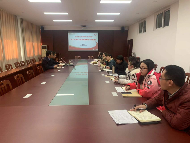 1月13日上午,商学院在三楼大会议室召开2021年度学生工作总结暨寒假工作部署会。学院党委副书记、院长殷凤春,党委副书记秦圣阳,全体辅导员参加会议。会议由秦圣阳主持。