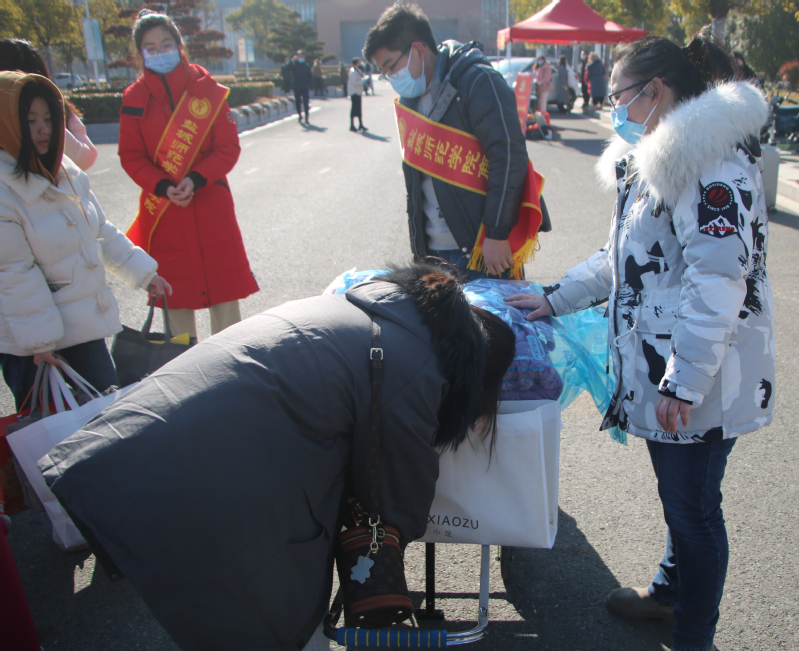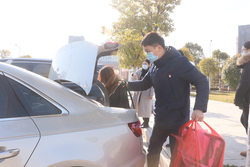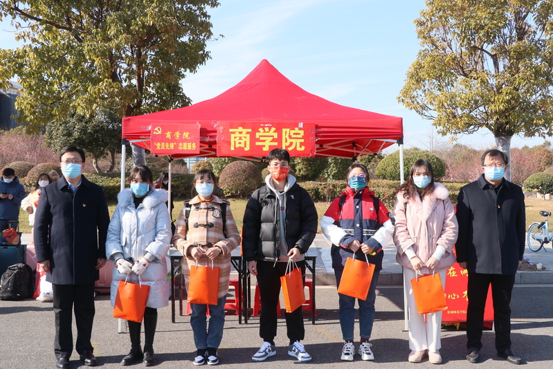 “同学你好!请出示健康码、行程码,走这里消毒、测温。”2月20日上午7时10分,商学院首位学生顺利抵达新校区北门,进入学生返校报到通道。“党员先锋”志愿服务队的党员师生们也早早来到党员服务站点,引导学生有序排队进校,认真做好行李消毒、身份核验、体温检测、防疫知识宣传等各项工作。教师党员们驾驶私家车,手提肩扛,身体力行帮助学生搬运行李到宿舍。财务处处长陆咸良和商学院党委书记李明还为返校学子送上防疫物资等“爱心健康礼包”。一声声“欢迎回家”的问候、一条条温馨提示、一份份“爱心防疫包”……让返校学子感受到了“回家”的亲切与温馨。