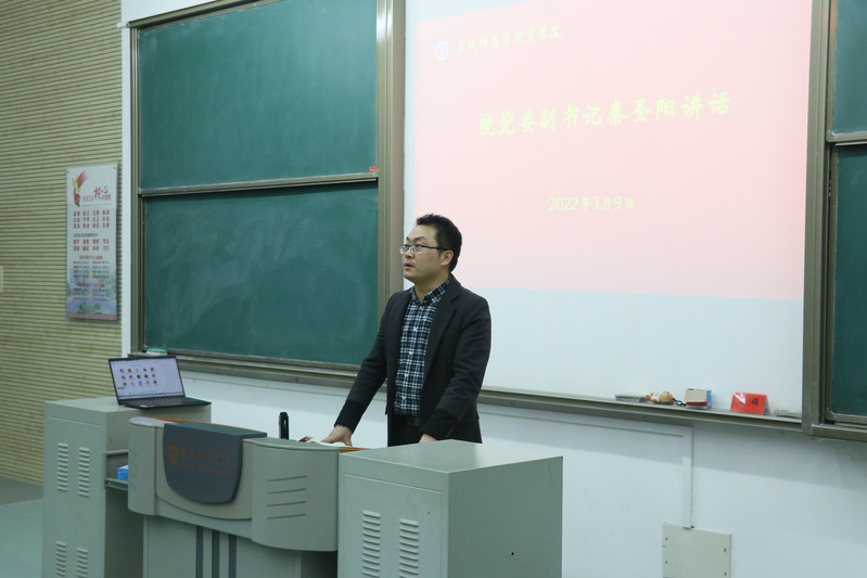 秦圣阳从提升学生工作的内涵建设出发,对广大学生干部提出五点希望:一要讲政治,牢记自己学生干部身份,谨言慎行;二要勤学习,做到专业学习和业务学习全面发展;三要会规划,提高工作创新性和超前性;四要强执行,提升自我教育、自我管理、自我服务的能力和水平,增强学生干部的责任担当意识;五要懂感恩,珍惜现有岗位,积极为学院发展和学生成长做奉献。