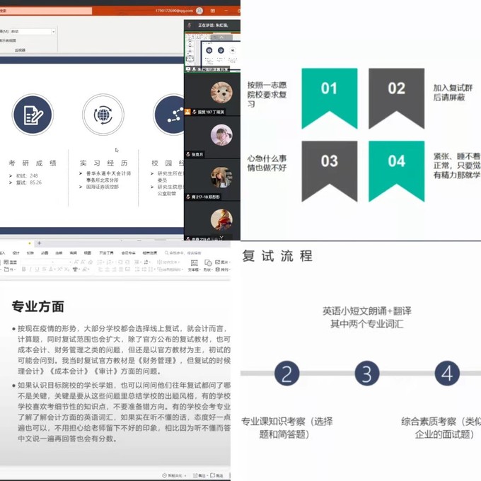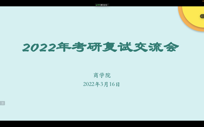 为推进2022届毕业生高质量就业,做好考复试指导服务工作, 3月16日,商学院举办2022年考研复试指导交流会。因疫情防控要求,会议采用线上腾讯会议方式进行。商学院党委副书记秦圣阳、财务会计系主任纪峰、毕业班班主任和入围复试学生参加会议。会议由辅导员耿明主持。