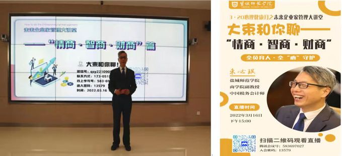 为构建我校心理育人新格局,营造全员育人的氛围,3月16日下午,由校大学生心理健康中心主办,商学院承办的“3·20心理健康教育月系列活动”在智慧教室举行。本次活动诚邀商学院副教授束必琪老师为全校学生做了主题为“未来企业家管理大课堂——情商·智商·财商”的专题讲座,讲座采用线上直播的方式进行,吸引了近2000多名学生参加。