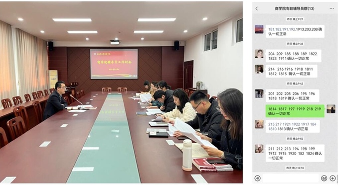 学院定期召开班主任工作例会,传达疫情防控精神及各项会议要求,对各项学生管理疫情防控工作作出全面、详细解读,对各位班主任存疑之处分别进行解答。另外,本着对每一位学生负责、服务的原则,学院学工队伍充分发挥党员和学生骨干的力量,在日常开展工作时形成了“宿舍—班级—班主任—学院”的最小网格化管理制度,最大程度上确保了全院2000多名学生每日晨午检、健康打卡等统计工作的准确严谨,推动学院防疫工作得到认真落实。学院还与每位班主任签订了“商学院疫情防控工作责任书”,强化班主任主体责任。