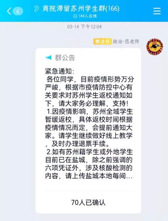 学院通过召开线上主题班会、学生干部、学生党员会议等,引导学生正确认识疫情防控严峻形势,坚决执行学校关于疫情防控的各项举措;充分发挥学生干部自我管理、自我服务的优势,团支部、党支部、学生会积极行动,形成网格状管理模式,全面掌握全院学生的活动动向和健康状况。针对滞留苏州学生、“3+11健康”健康监测学生、隔离学生等群体进行重点摸排,辅导员一一电话沟通,表达关切;加强假期学生心理危机追踪,做好心理疏导与预警工作。