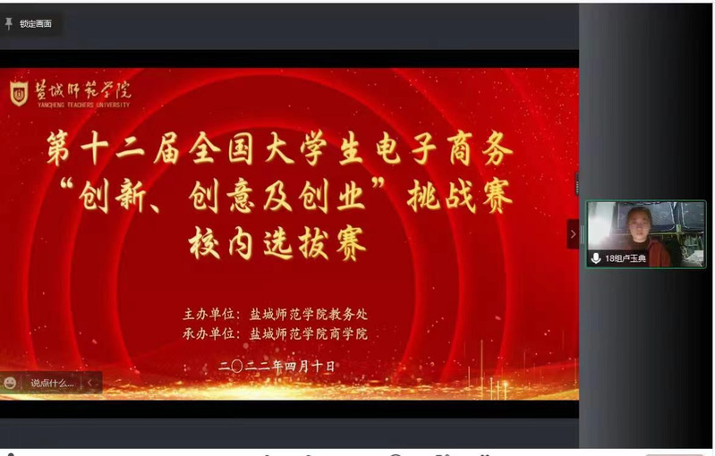 为激发我校学生自主创业的热情,4月10日下午,我校第十二届全国大学生电子商务“三创赛”校内选拔赛在我院召开。因疫情防控要求,比赛采用线上腾讯会议方式进行。大赛由盐城师范学院教务处主办,商学院承办。教务处负责同志、学校部分教授及校外企业家担任评委。本场比赛由商学院党委副书记、院长殷凤春主持。