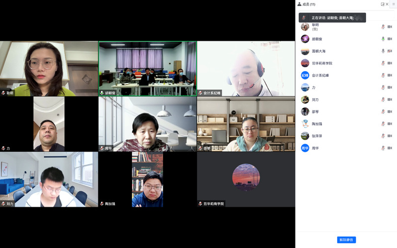 4月13日上午,商学院召开四月份党务工作例会,因疫情防控要求,本次会议通过腾讯会议“线上+线下”相结合进行。学院党委书记李明,党委副书记、院长殷凤春,党委副书记秦圣阳,副院长钱英、王力,党委委员、各党支部书记参加会议。会议由李明主持。