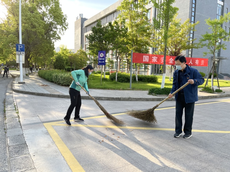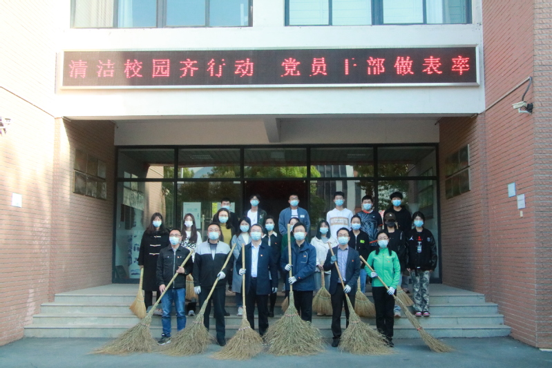 商学院党委书记李明、招生就业处副处长王再军、商学院党委副书记秦圣阳、副院长钱英、全体住校辅导员及部分学生代表参加了清扫活动。