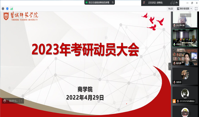 为全方位做好2023年考研工作,4月29日,商学院召开2023年考研动员大会。因疫情防控要求,会议采用“线上+线下”方式进行。商学院党委副书记、院长殷凤春,党委副书记秦圣阳,财务会计系主任纪峰,金融系主任祝婧然,19级班主任及考研学生参加会议。会议由秦圣阳主持。