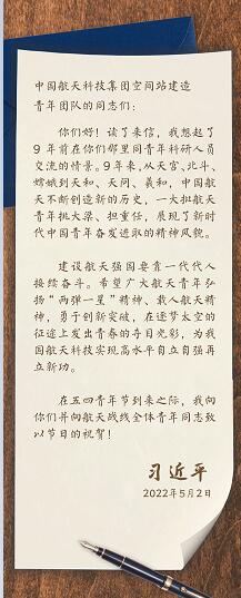 在五四青年节到来之际,中共中央总书记、国家主席、中央军委主席习近平5月2日给中国航天科技集团空间站建造青年团队回信,向航天战线全体青年致以节日的祝贺,并向他们提出殷切期望。习近平总书记在回信中强调,建设航天强国要靠一代代人接续奋斗,希望广大航天青年弘扬“两弹一星”精神、载人航天精神,勇于创新突破,在逐梦太空的征途上发出青春的夺目光彩,为我国航天科技实现高水平自立自强再立新功。回信字字暖心、催人奋进,在商学院师生中引发热烈反响。