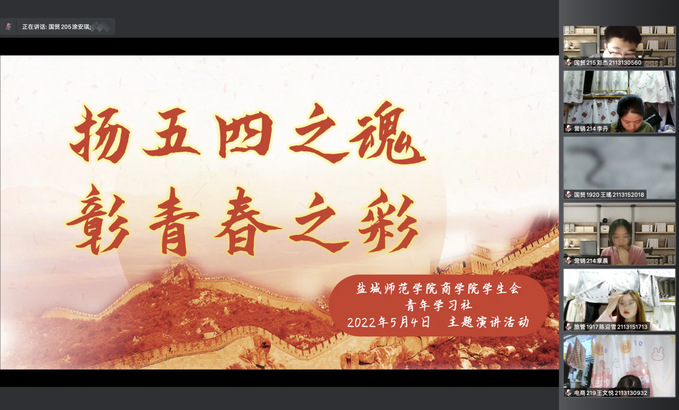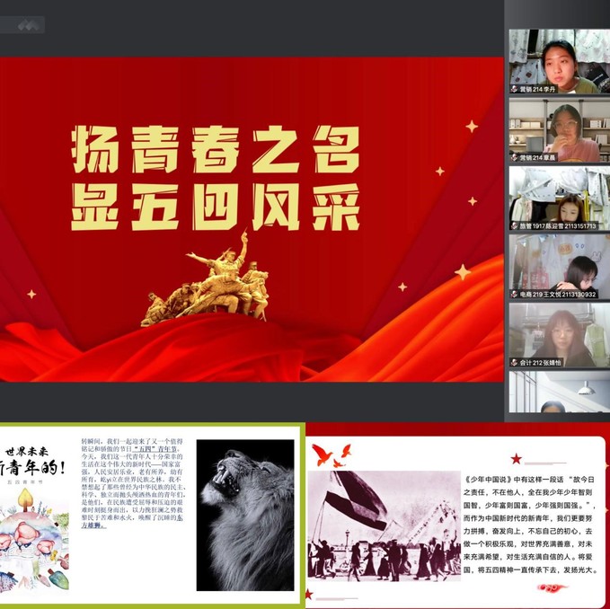 为丰富学生课余生活,提高文化素养,强化爱国精神,传播红色文化,商学院举办“扬五四之魂,彰青春之彩”线上主题演讲活动。比赛中,参赛选手的演讲青春激昂,声情并茂,结合各自的学习、工作、生活经历,从不同角度表达了自己对“青春”的理解。以质朴的语言、真挚的情感描述了作为一名新时代青年应有的奋斗精神和家国情怀。