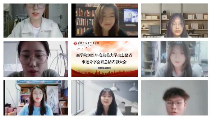 为进一步弘扬“五四”精神,发挥青年学子先进典型的模范带头作用,商学院分团委于5月4日在线上举办2021年度最美大学生志愿者事迹分享会暨总结表彰大会。本次分享会由商学院分团委副书记邵琴主持。