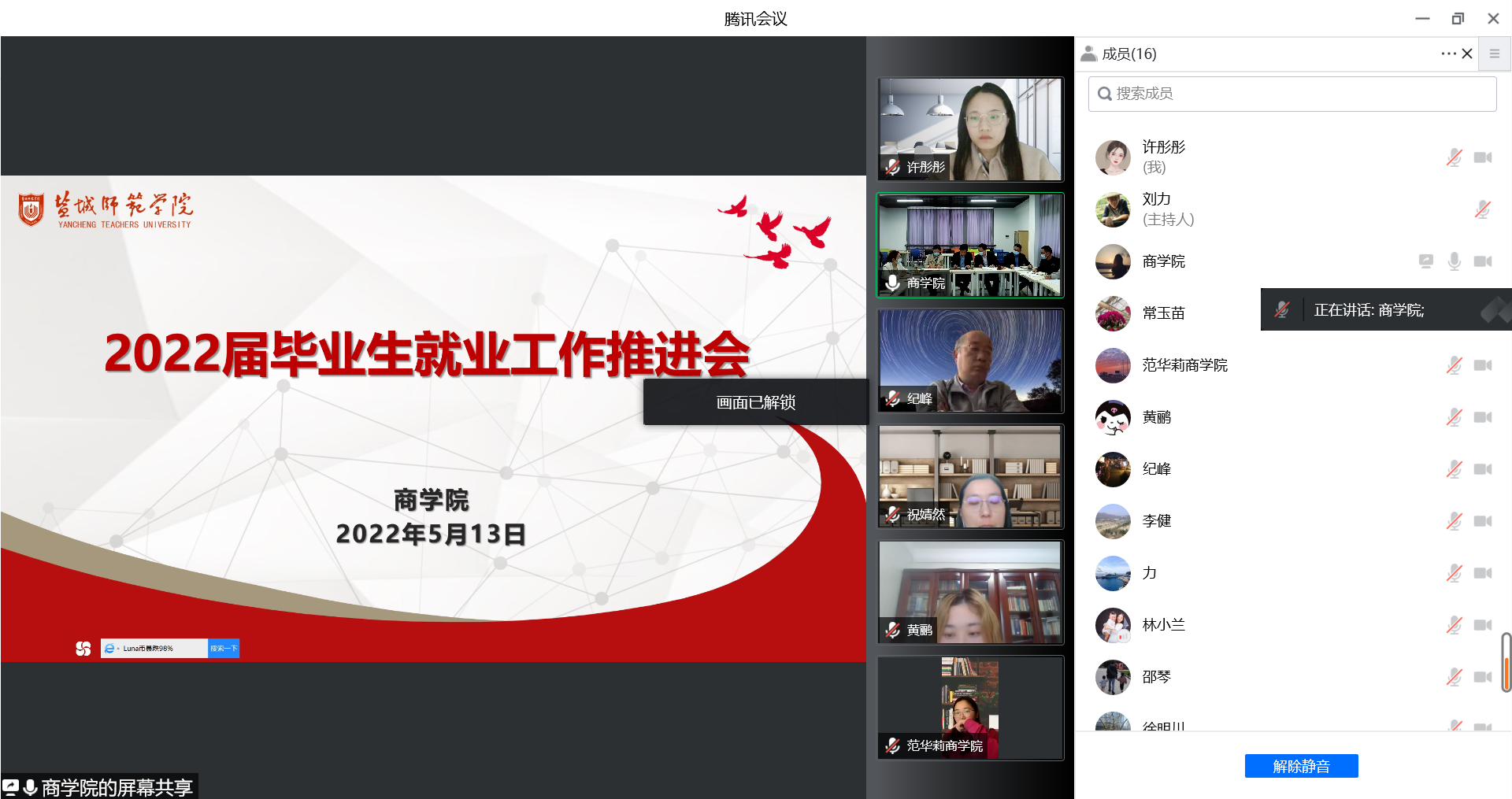 为进一步做好毕业生就业工作,5月13日,商学院召开2022届毕业生就业工作推进会。因疫情防控需要,会议通过“线上+线下”的方式进行。商学院党委书记李明,党委副书记、院长殷凤春,党委副书记秦圣阳,副院长钱英、王力,全体系主任及毕业班班主任参加会议。会议由殷凤春主持。
