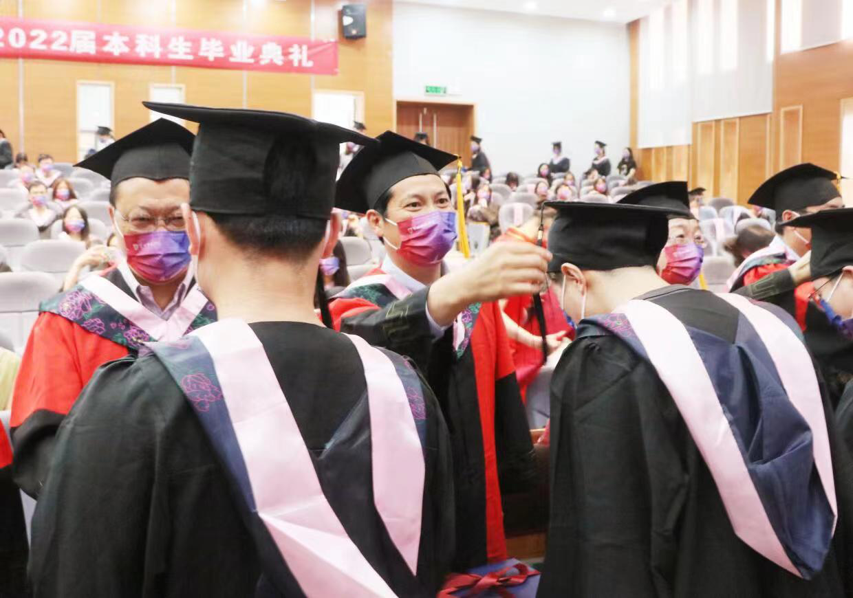 分会场,主席台就坐的院领导和系主任分别为毕业生代表颁发优秀毕业生荣誉证书和毕业证书;为现场毕业生拨穗正冠,授予学士学位;为2022届校友联络员代表颁发聘书。典礼在深情嘹亮的校歌声中落下帷幕。全体院领导和师生起立目送毕业生出发,祝福商学院2022届996名毕业生前程似锦、未来可期!