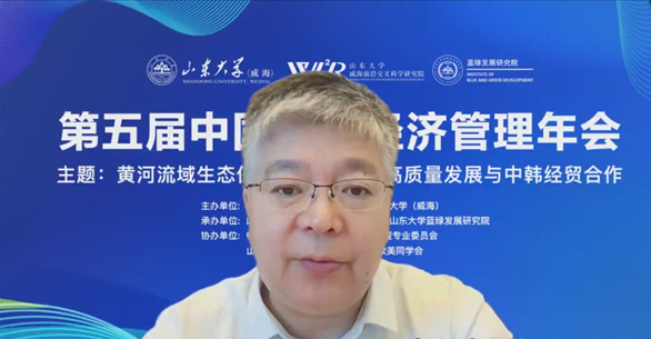 陈诗一回顾了中韩两国贸易发展的紧密联系,强调本届年会旨在贯彻落实习近平总书记关于黄河流域生态保护和高质量发展的重要指示精神,推动中国经济转型,为中韩经济高质量发展贡献积极智慧。他希望各位专家学者积极交换学术思想,为碳中和、碳达峰与经济高质量发展等国家战略做出重要贡献。