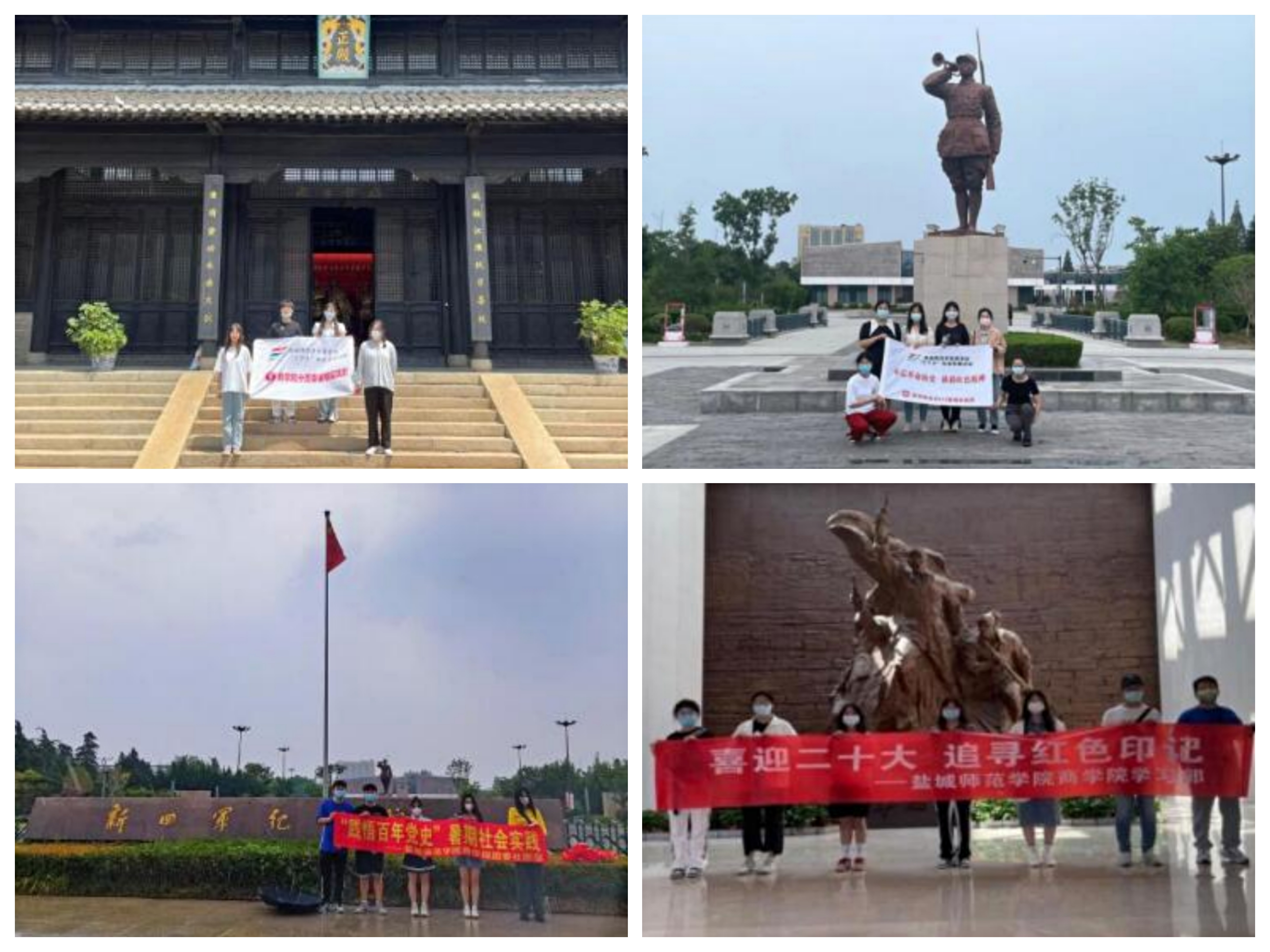 寻迹历史,与国旗同框,用爱国热情,谱写初心使命。商学院组建了二十多支队伍,团队成员依托省内外红色资源,就近就便采用重走红色足迹、追溯红色记忆、访谈红色人物、挖掘红色故事、体悟红色文化等多种形式深入基层实践。同学们在江苏、贵州、四川、宁夏等十余个省市自治区的家乡红色地标处进行打卡,以寻访红色基地的形式重温革命历史,通过影像和文字记录打卡红色地标的生动实践,在重温历史的过程中传承红色基因,弘扬革命精神。