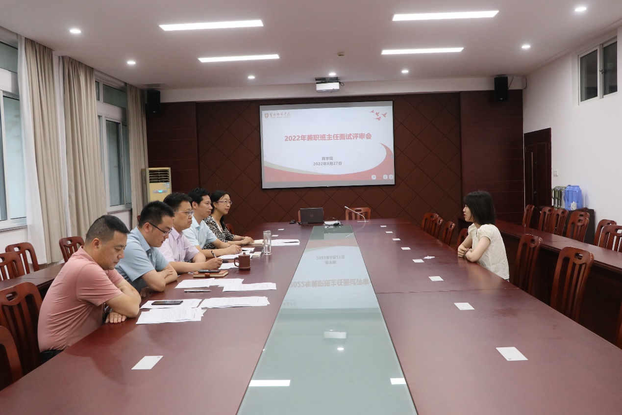 为进一步充实学院班主任队伍,发挥专业教师在大学生思想教育、学业、学术发展过程中的指导作用,8月27日下午,商学院在逸夫楼三楼大会议室召开兼职班主任面试评审会。学院党委书记李明,党委副书记、院长殷凤春,党委副书记秦圣阳,副院长钱英、王力出席并担任评委。
