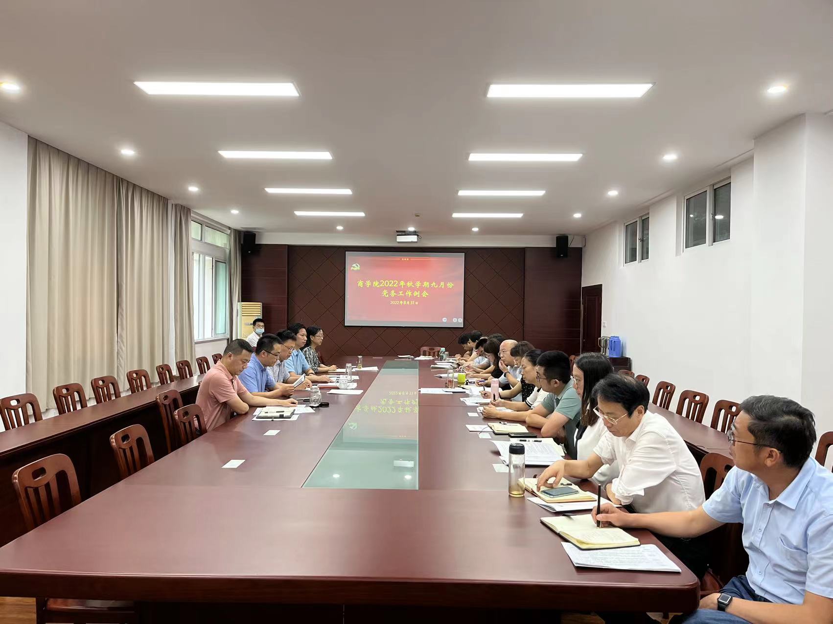 8月31日上午,商学院在三楼大会议室召开九月份党务工作例会。学院党委书记李明,党委副书记、院长殷凤春,党委副书记秦圣阳,副院长钱英、王力,各支部书记参加会议。会议由李明主持。