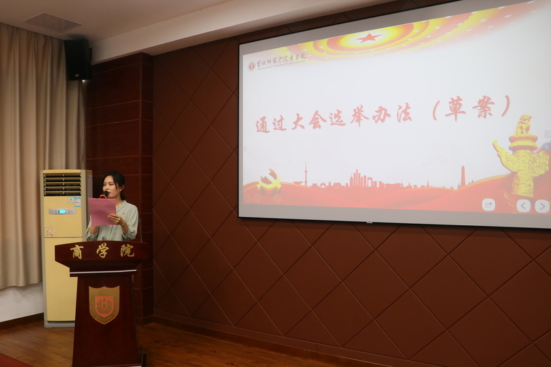 大会在庄严的国歌声中拉开帷幕,严格按照《中国共产党章程》《中国共产党基层组织选举工作条例》的程序和规定进行选举。首先,学院党委副书记、院长殷凤春宣读了《关于同意商学院党委报来的出席中共盐城师范学院第四次代表大会代表候选人预备人选的批复》。大会先后表决通过了《中国共产党盐城师范学院第四次代表大会选举办法(草案)》、监票人、计票人名单以及中国共产党盐城师范学院第四次代表大会商学院代表候选人名单。在充分发扬民主、广泛酝酿讨论的基础上,经过无记名投票、验票、计票等环节,差额选举产生了许彤彤、纪峰、李明、张萍萍、周华、郝俊尧、殷凤春、陶加强(按照姓氏笔画顺序)8名同志作为中共盐城师范学院第四次代表大会代表。