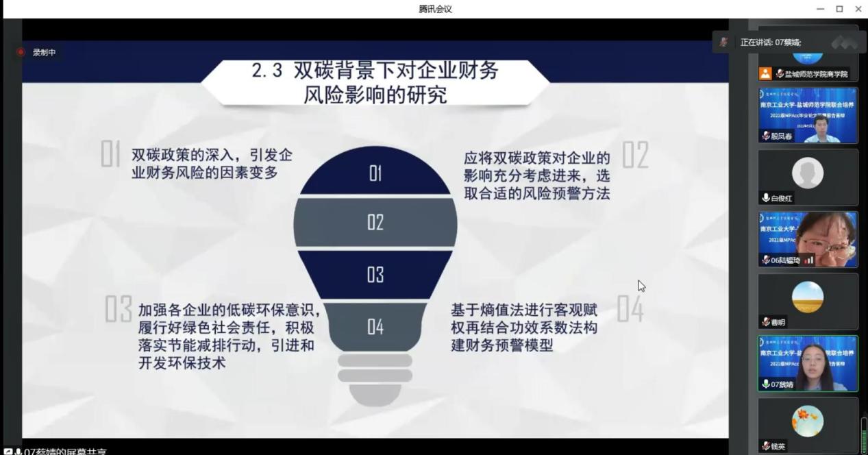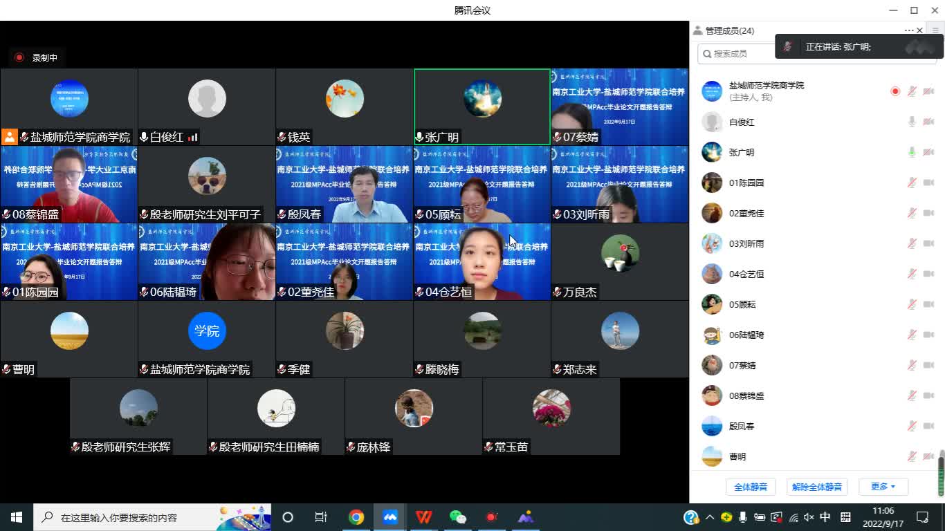 9月17日上午,我院举行2021级南京工业大学-盐城师范学院联合培养MPAcc毕业论文开题报告答辩会议。答辩小组由南京工业大学党委研究生工作部部长、研究生院常务副院长张广明,南京航空航天大学经济管理学院院长周德群,南京师范大学商学院院长白俊红,我校学科办主任、研究生处处长曹明、商学院副院长钱英等5人组成,张广明担任开题报告小组组长,8名研究生及其导师参加了会议,会议由我院党委副书记、院长殷凤春主持。