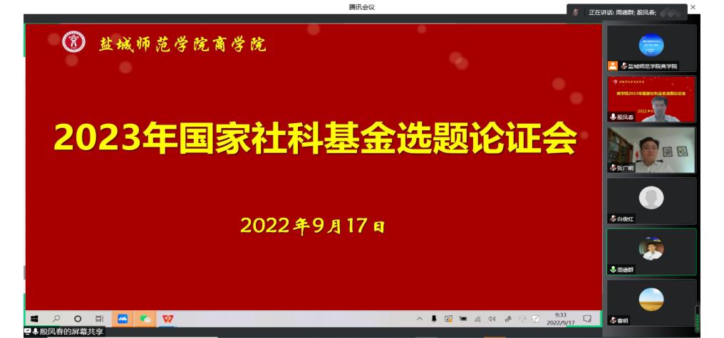 9月17日上午,商学院举行了2023年度国家社科基金项目选题论证会。会议邀请南京工业大学党委研究生工作部部长、研究生院常务副院长张广明教授,南京航空航天大学经济与管理学院院长周德群教授,南京师范大学商学院院长白俊红教授举行在线指导。商学院党委副书记、院长殷凤春,副院长钱英,国家社科基金项目申报人员出席了会议,会议由殷凤春主持。