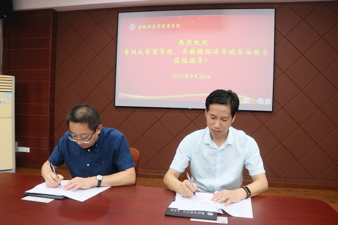 期间,我校商学院与常州大学吴敬琏经济学院签署了联合培养研究生及共建研究生生源基地合作协议。