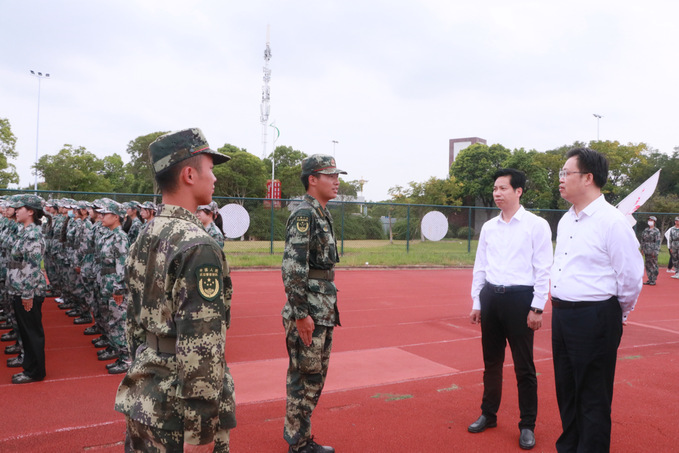 为深入了解军训情况,关心关爱参训师生,9月27日下午,商学院党委书记李明,党委副书记、院长殷凤春,党委副书记秦圣阳,副院长钱英、王力走进操场,亲切慰问正在参训的新生。