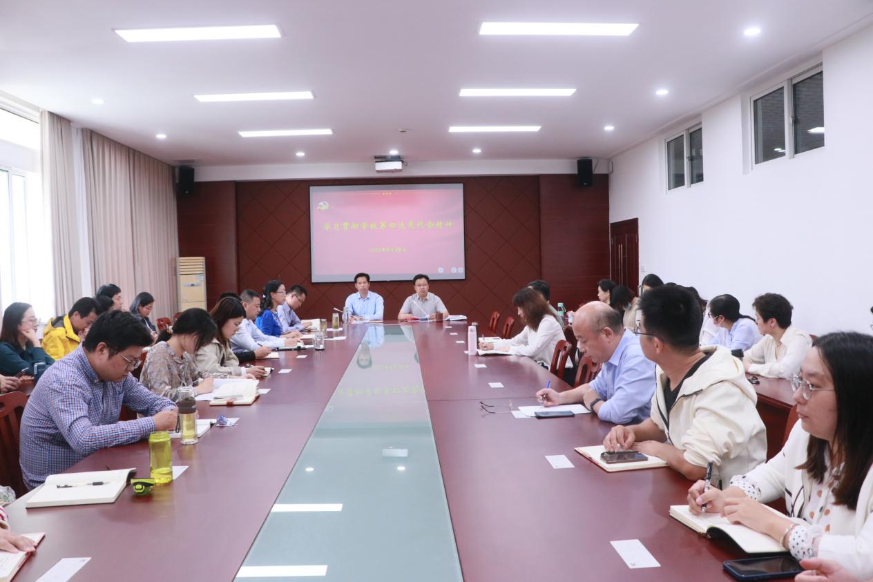 李明简要介绍了学校第四次党代会概况,重点对校党委书记戴斌荣代表学校第三届党委所作的《聚力高质量发展 聚能高层次提升 为加快建成特色鲜明的高水平师范大学而奋斗》工作报告进行了详细解读,要求全院教职工认真学习贯彻第四次党代会精神,为全面完成党代会提出的各项任务而努力奋斗!