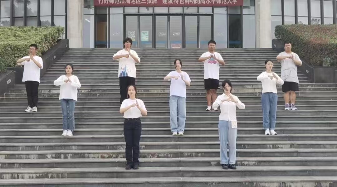 同学们怀着一颗爱国之心在学校图书馆、诸子山和逸夫楼等处录制视频,视频以《国家》为背景音乐,搭配协调统一的手势动作,表达商院学子对祖国母亲的忠诚和热爱。本次快闪活动凝结了商院学子对祖国母亲最真挚的祝福,有效激发了商院学子爱国热情。