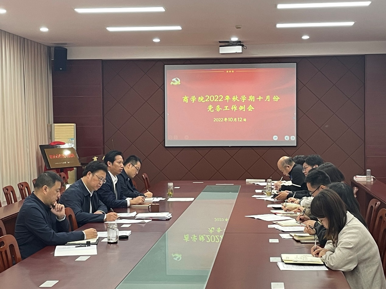 10月12日上午,商学院在三楼大会议室召开十月份党务工作例会。学院党委书记李明,党委副书记、院长殷凤春,党委副书记秦圣阳,副院长王力,各支部书记参加会议。会议由李明主持。