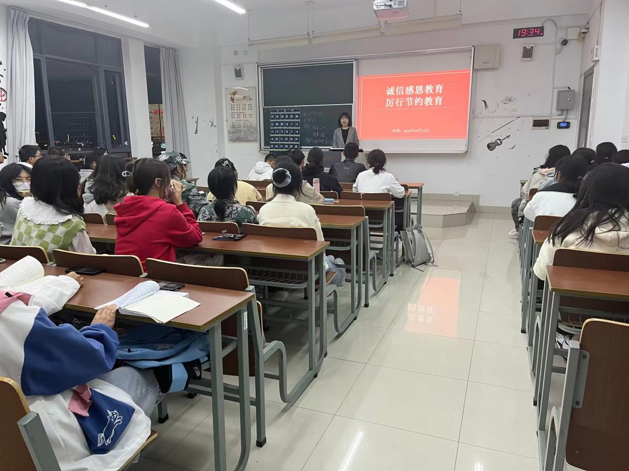 为提高新生品德修养,懂得诚信感恩,养成节约之风,商学院以诚信感恩、厉行节约为主题召开班会。各班主任指出在日常学习生活中,同学们须树立诚信意识,常怀感恩之心,做到勤俭节约,养成良好的学习与生活习惯。
