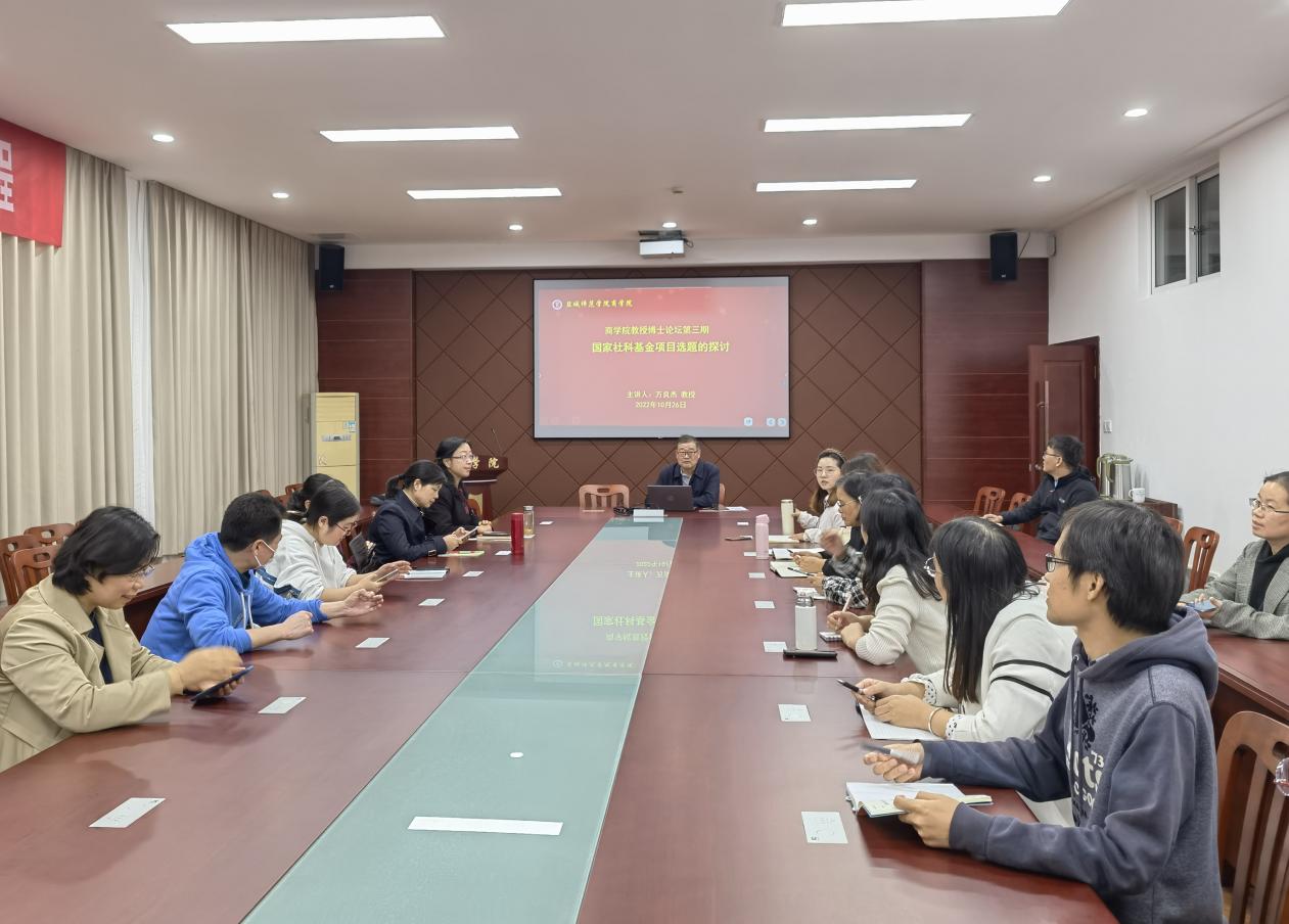 10月26日下午商学院在大会议室举办了第三期教授博士论坛,商学院万良杰教授作题为《国家社科基金项目选题的探讨》的讲座,学院部分教授、博士及青年教师20余人参加了会议。会议由副院长钱英主持。