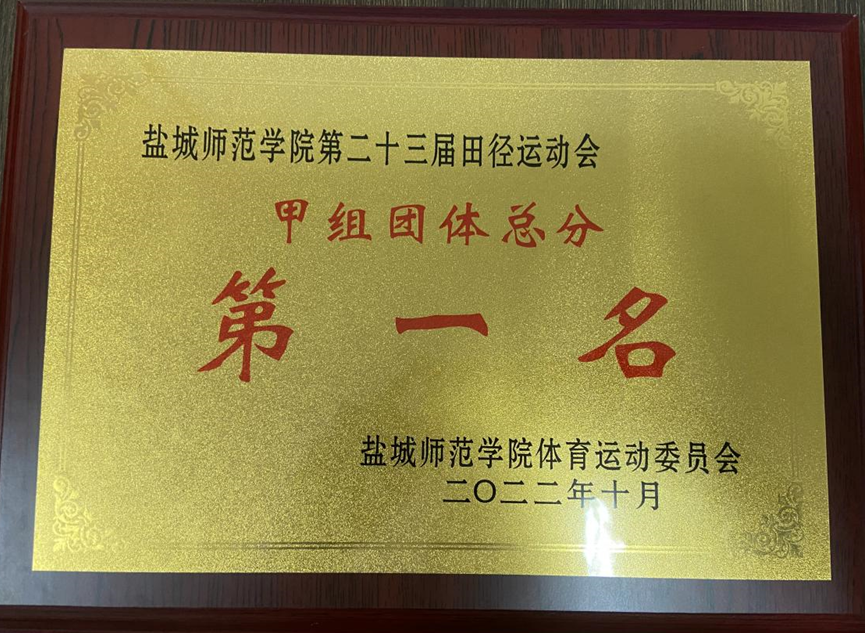 10月27日—28日,盐城师范学院第23届田径运动会在新长校区隆重举行。商学院运动健儿们同心协力、锐意进取、顽强拼搏,最终荣获学生甲组团体总分第一名、甲组(男子)团体总分第一名、甲组(女子)团体总分第一名、体育道德风尚奖、最佳入场式方队、特别贡献奖等优异成绩,蝉联十五届学生团体总分冠军。