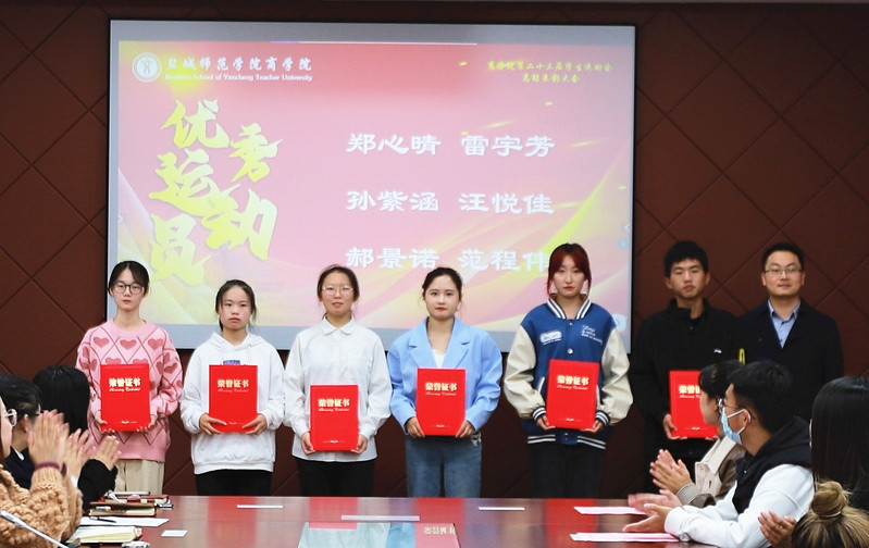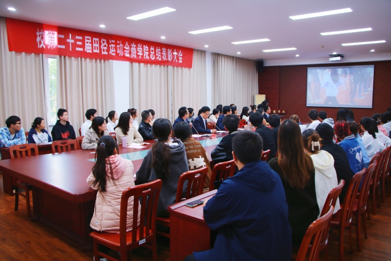 11月9日下午,商学院在三楼大会议室举行校第二十三届学生运动会总结表彰大会。学院党委书记李明,党委副书记、院长殷凤春,党委副书记秦圣阳,副院长钱英、王力,全体辅导员,新生班主任,全体运动员、学生会代表和志愿者代表出席本次活动。总结表彰大会由秦圣阳主持。