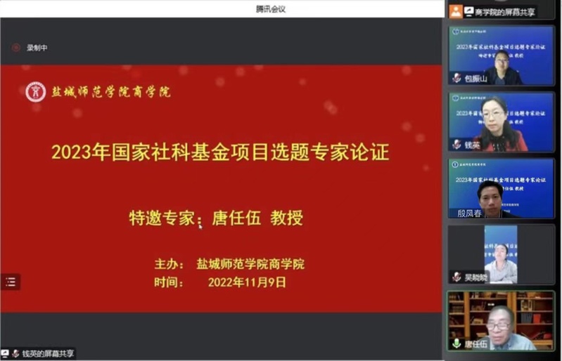 11月9日晚,商学院举行了2023年度国家社科基金项目选题论证会。会议邀请北京师范大学唐任伍教授进行在线指导。商学院党委副书记、院长殷凤春,副院长钱英,国家社科基金项目申报人员出席了会议,会议由殷凤春主持。