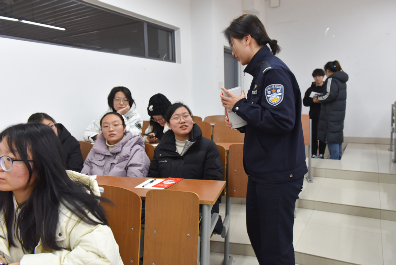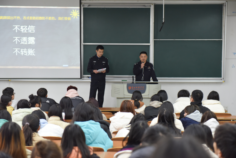 为了进一步提高大学生防诈骗意识,2月22日下午,校保卫处联合商学院邀请新城派出所在新长校区公共教学楼A106举办反电信诈骗专题讲座。新城派出所民警,保卫处有关同志,200余名商学院师生代表参加讲座。讲座由保卫处副处长韩朝春主持。