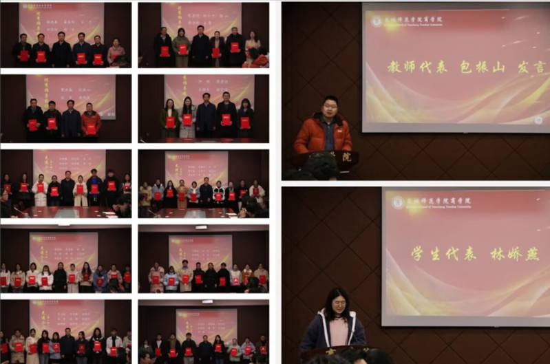 会上,副院长王力宣读了《关于表彰商学院2022年度全国A类赛事优秀指导教师和先进个人的决定》,希望受表彰的师生珍惜荣誉、再接再厉,充分发挥榜样作用。会上对优秀指导教师和学生先进个人进行了颁奖。指导教师代表包振山、学生代表林娇燕分别结合个人参赛经验做了分享发言。