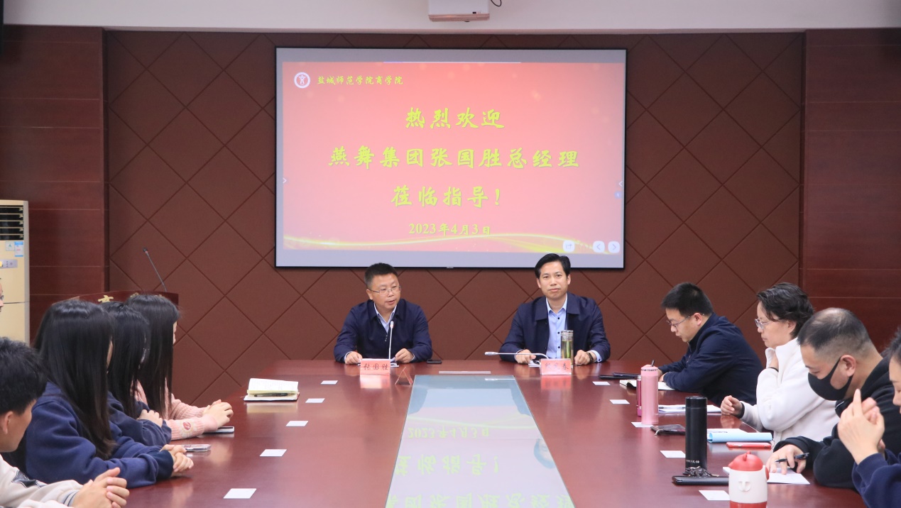 4月3日下午,在逸夫楼商学院三楼大会议室,燕舞集团总经理张国胜为商学院师生做文旅高质量发展专题报告。商学院党委副书记、院长殷凤春主持报告会。