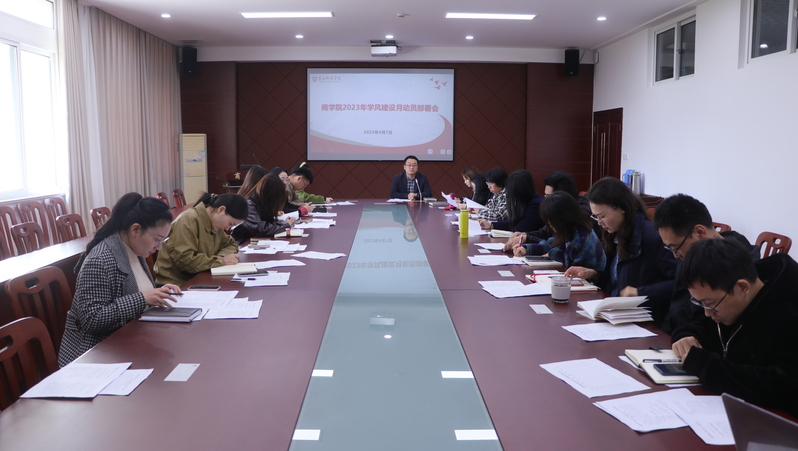 为了促进学院事业高质量发展,深入贯彻落实立德树人根本任务,进一步加强优良学风建设,促进学生健康成长和综合素质全面提高,4月7日上午,商学院在逸夫楼三楼会议室召开2023年学风建设月动员部署大会。党委副书记秦圣阳和全体专职辅导员、兼职班主任参加会议。会议由秦圣阳主持。