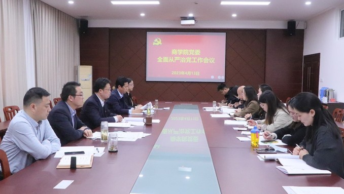 为深入贯彻习近平新时代中国特色社会主义思想和党的二十大精神,切实推进全面从严治党,4月13日下午,商学院在逸夫楼大会议室召开2023年全面从严治党工作会议。商学院党政班子成员、全体党支部书记、系部负责人参加会议,会议由商学院党委书记李明主持。