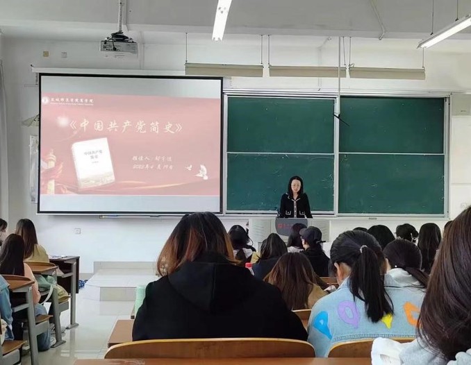 在“我心向党读书会”上,郝宇佳老师领学了《中国共产党简史》精选篇章。郝宇佳指出,中国共产党百年沐风栉雨,而今赤心弥坚。从视频中泛黄的老照片到崭新的数码照片,呈现出党一路走来跌宕起伏、苦难辉煌的历程,要以史为鉴不惧困难、砥砺前行。郝宇佳勉励各位学生要永葆爱国热情,点燃智慧的火花,探索知识的力量,树立报国的志向。