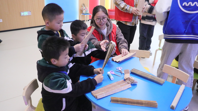 大家参观绘本馆、数字馆、创智馆、阅览室等,详细了解馆内借阅流程、图书分类以及各种数字设备的使用方法。现场,志愿者们与图书馆交换书籍,并开展图书归类、上架和整理,引导馆内读者遵守秩序、文明阅读,展示了当代大学生青春奉献,积极向上的精神风貌。大家还与小朋友们一起动手自制蝴蝶书本,共读一本好书。