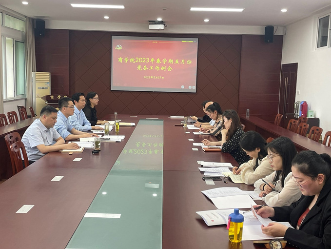 5月17日上午,商学院在大会议室召开五月份党务工作例会。学院党委副书记、院长殷凤春,党委副书记秦圣阳,副院长钱英、王力,各支部书记参加会议。会议由殷凤春主持。