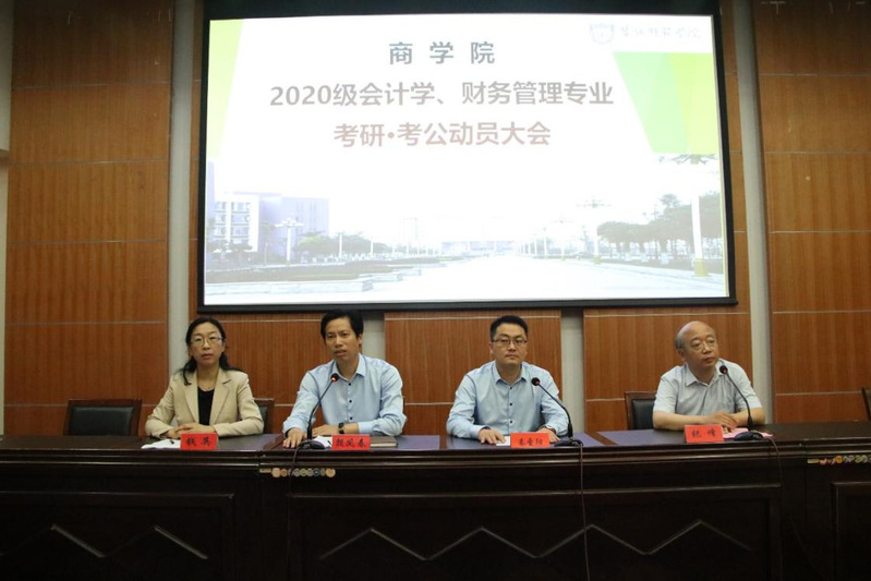 为全面做好2020级考公考研工作,5月17日下午,商学院在图书馆学术报告厅举行了会计学与财务管理专业考公考研经验分享会。商学院党委副书记、院长殷凤春,党委副书记秦圣阳,副院长钱英,财务与会计系教师和2020级全体学生参加了会议。会议由财务与会计系主任纪峰主持。