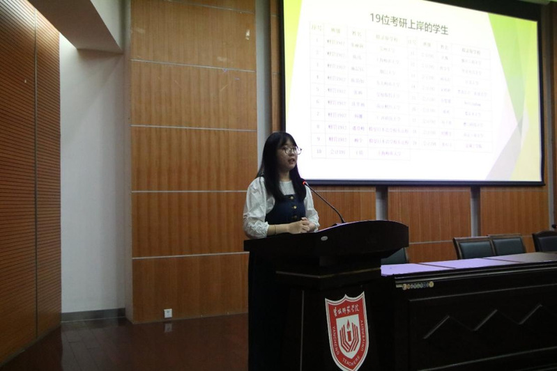 学生代表陆颖、蒋莹莹和孙玮君分别从考研和考公的两个方面为同学们讲述了自己的备考过程和心得体会。他们结合自身经历从如何规划考研时间、考研复习资料的选择、各门课程学习方法、心态调节、考研技巧、考研学校的选择等方面进行了深入交流。同时从如何了解公务员职业特点、如何选择适合自己的岗位和地区、如何备战行测和申论、如何应对面试等方面进行了详细介绍。