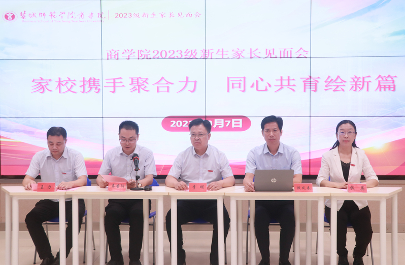 会上,殷凤春首先代表学院对2023级新生的加入表示欢迎,对各位家长朋友的关心支持表示感谢,并从历史沿革、党的建设、教学科研、人才培养、学生工作、社会服务等方面介绍了商学院高质量发展情况。钱英希望各位家长能与学校通力合作,一是学会放手,让孩子学会自立自强;二是学会理解,理解孩子的合理需求;三是学会关注,关注孩子的全面发展。王力向新生们提出三点期待:一是矢志向学,敢于胜利;二是勇于挑战,突破自我;三是惜时如金,重塑自我。李明就家校共育与家长分享了三点“回归”:一是回归教育的真谛,适当调试期望值;二是回归家长定位,目光长远,一起助力学生成长成才;三是回归家校默契,相信学院,协同育人。