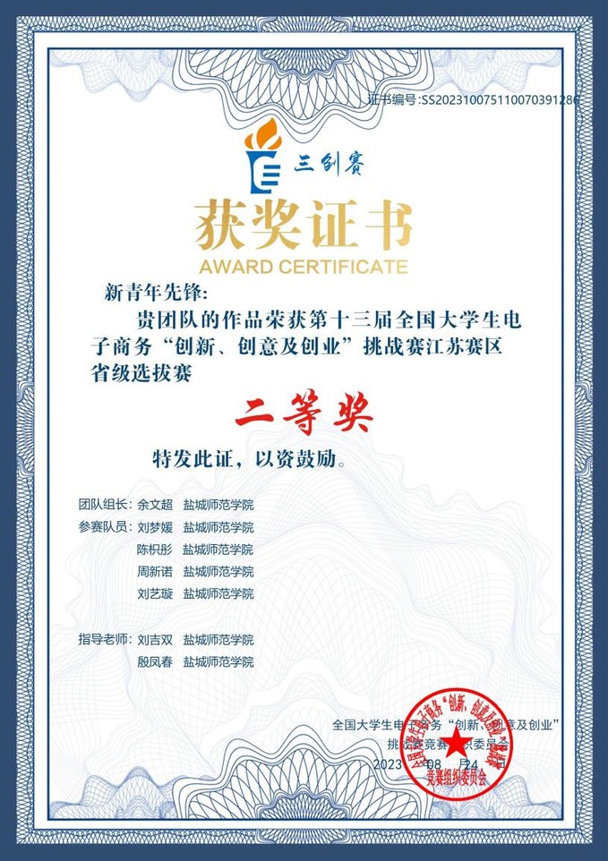 近日,第十三届全国大学生电子商务“创新、创意及创业”挑战赛落下帷幕,我校商学院余文超、刘梦媛、陈枳彤、周新诺、刘艺璇5位同学组成的团队(指导教师:刘吉双、殷风春)获得省赛二等奖;葛娴、谢夕梅、李丹、石本养、饶园园5位同学组成的团队(指导老师:王黎)获得省赛三等奖。