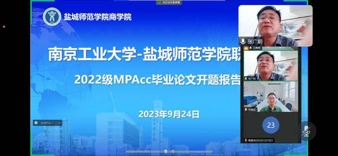 9月24日,我院在逸夫楼商学院大会议室举行2022级南京工业大学-盐城师范学院联合培养MPAcc论文开题答辩会议。答辩小组由南京工业大学党委研究生工作部部长、研究生院常务副院长张广明,南京师范大学商学院院长白俊红,盐城工学院经济管理学院院长赵永亮、副院长李争光,我校学科建设办公室主任、研究生处处长曹明等5人组成。白俊红担任开题报告小组组长。8名研究生及其导师参加了会议。会议由我院党委副书记、院长殷凤春主持。