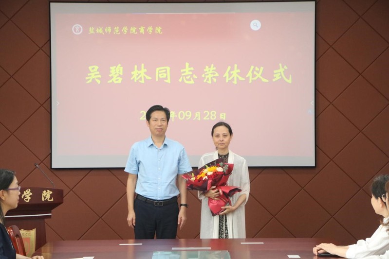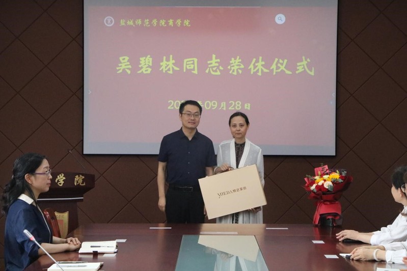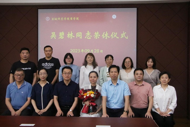 9月28日上午,商学院在大会议室举行退休教师荣休仪式。荣休教师吴碧林,学院党委副书记、院长殷凤春,党委副书记秦圣阳,副院长钱英、王力,工商管理系教师代表参加仪式。仪式由殷凤春主持。