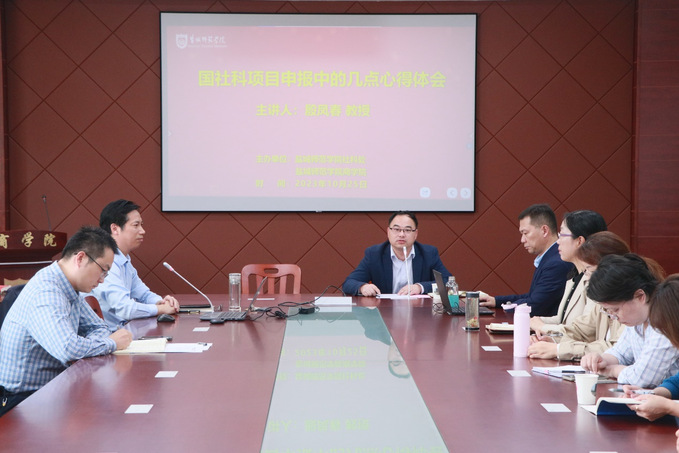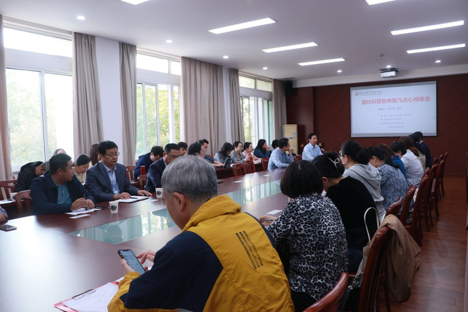 为进一步推动我校有组织科研的有效实施,提升教师的科研综合能力和项目申报质量,10月25日下午,我校第二期国家社科项目申报指导讲座在商学院三楼大会议室成功举办,本次论坛由我校社科处、商学院主办。商学院党委副书记、院长殷凤春作题为《国社科项目申报几点心得体会》的讲座,社科处副处长罗兴奇,商学院党委书记刘振亚,副书记秦圣阳,副院长钱英,我校国家社科项目申报教师及近三年新进青年教师100余人参加了此次讲座。论坛活动由罗兴奇主持。
