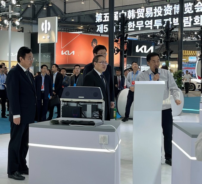 省商务厅厅长陈涛介绍江苏支持韩资企业发展政策举措与合作愿景。市委副书记、市长张明康推介盐城经济社会发展情况。韩国SKon株式会社总括社长崔映赞、深圳埃克森新能源科技有限公司总裁尤军、华人运通(江苏)技术有限公司董事长丁磊、聚盟集团董事长张玉晶、万帮数字能源股份有限公司董事长邵丹薇先后发言。