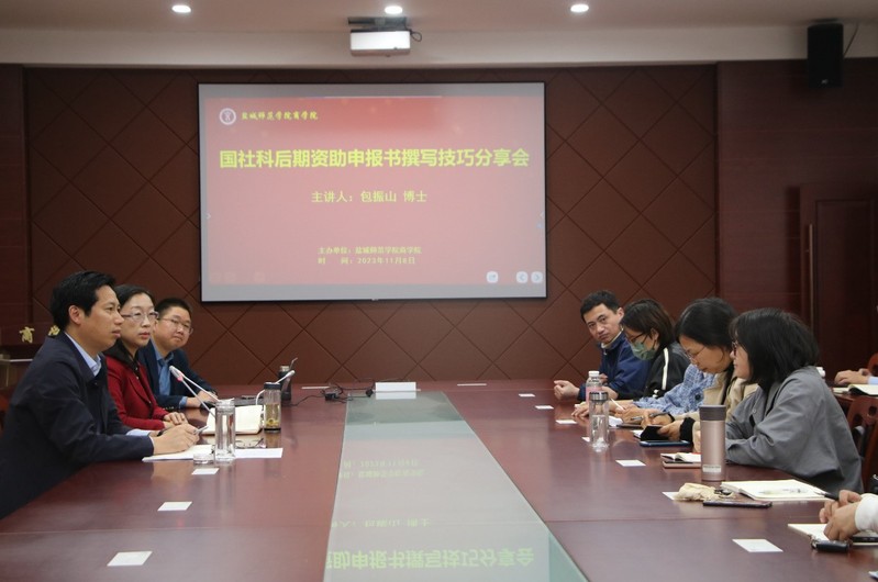 为进一步提升高层次项目的申报质量,积极推动学院科研工作再上新台阶,11月8日下午,商学院包振山博士在大会议室作题为《国社科后期资助申报书撰写技巧》的分享会,商学院院长殷凤春、副院长钱英,部分青年教师参加了此次活动。分享会由钱英主持。